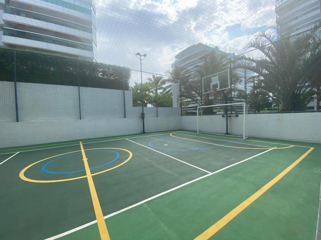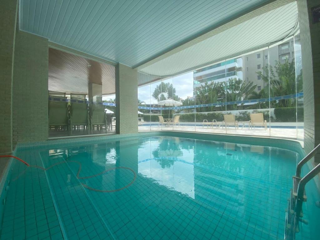 O condomínio oferece uma completa estrutura de lazer e comodidade, incluindo salão de festas, salão de jogos, piscinas adulto e infantil aquecidas, academia (fitness), playground, chopeira, quadra de tênis, quadra poliesportiva, churrasqueira, forno de pizza, brinquedoteca e serviço de praia, garantindo diversão e conforto para todas as idades.