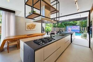 Casa Espetacular com decoração de fino bom gosto, situada em rua tranquila, com: - 8 suítes, sendo 2 Master e - 1 suíte de empregada; - piscina aquecida; - sauna á vapor Hot and Cool; - spa; - fire place; - ar condicionado em todos os ambientes; - chopeira; - churrasqueira; - máquina de gelo; - telão externo; - mesa de sinuca; - sistema de áudio e video completo; - totalmente mobiliada com móveis de 1º linha; - cozinha equipada e com eletrodomésticos; - decoração de excelente bom gosto; - sistema de câmeras de monitoramento; - box Elegance com 2,40m de altura; - portas com 2,40m de altura; - fechadura eletrônica; - aquecimento solar; - sistema de áudio Multiroom; - sistema completo de automação com controle de cortinas e persianas, controle de climatização, controle de iluminação, acionamento automatizado da chopeira, controle de áudio e vídeo; - Alexia; - espelho d\'água; - aspiração central; - lago artificial com carpas; - sistema de água de reuso; - 4 vagas; - rua privativa com portaria e segurança 24h; - serviço de praia com guarda-sol, cadeiras na praia, e carrinho que leva e trás na praia!; - lazer compartilhado com quadra de tênis e academia. O melhor endereço da Riviera!
