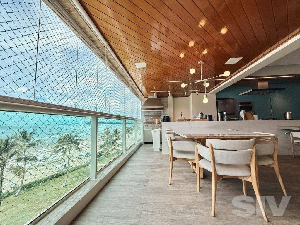 Este belíssimo apartamento à venda na Riviera de São Lourenço une sofisticação, conforto e uma localização privilegiada, com vista mar frontal definitiva e excelente incidência de sol da manhã. Totalmente reformado, mobiliado e decorado, o imóvel está pronto para morar ou investir, oferecendo um alto padrão em cada detalhe. Com 147,05 m² de área útil, o apartamento possui uma planta bem distribuída, com três suítes completas, todas climatizadas, além de dormitório de serviço reversível, WC social e WC de serviço, garantindo funcionalidade e conforto para moradores e convidados. A sala para dois ambientes, ampla e climatizada, integra-se harmoniosamente à varanda gourmet, criando um espaço perfeito para momentos de lazer e convivência, sempre com a vista espetacular do mar. A cozinha e a área de jantar, totalmente integradas, contam com fechamento em vidro e climatização, proporcionando modernidade, iluminação natural e praticidade no dia a dia. O imóvel dispõe ainda de área de serviço com despensa, além de duas vagas de garagem. Todos os ambientes e dormitórios são climatizados, reforçando o conforto térmico e o cuidado com cada detalhe do projeto. Um apartamento exclusivo, com ambientes integrados, acabamento impecável e vista frontal para o mar, ideal para quem busca viver com qualidade, elegância e o melhor que a Riviera de São Lourenço pode oferecer. APARTAMENTO para Venda em RIVIERA DE SÃO LOURENÇO - BERTIOGA com 147 m2 de área útil, 3 dormitório(s), 3 suíte(s) e 2 vaga(s).